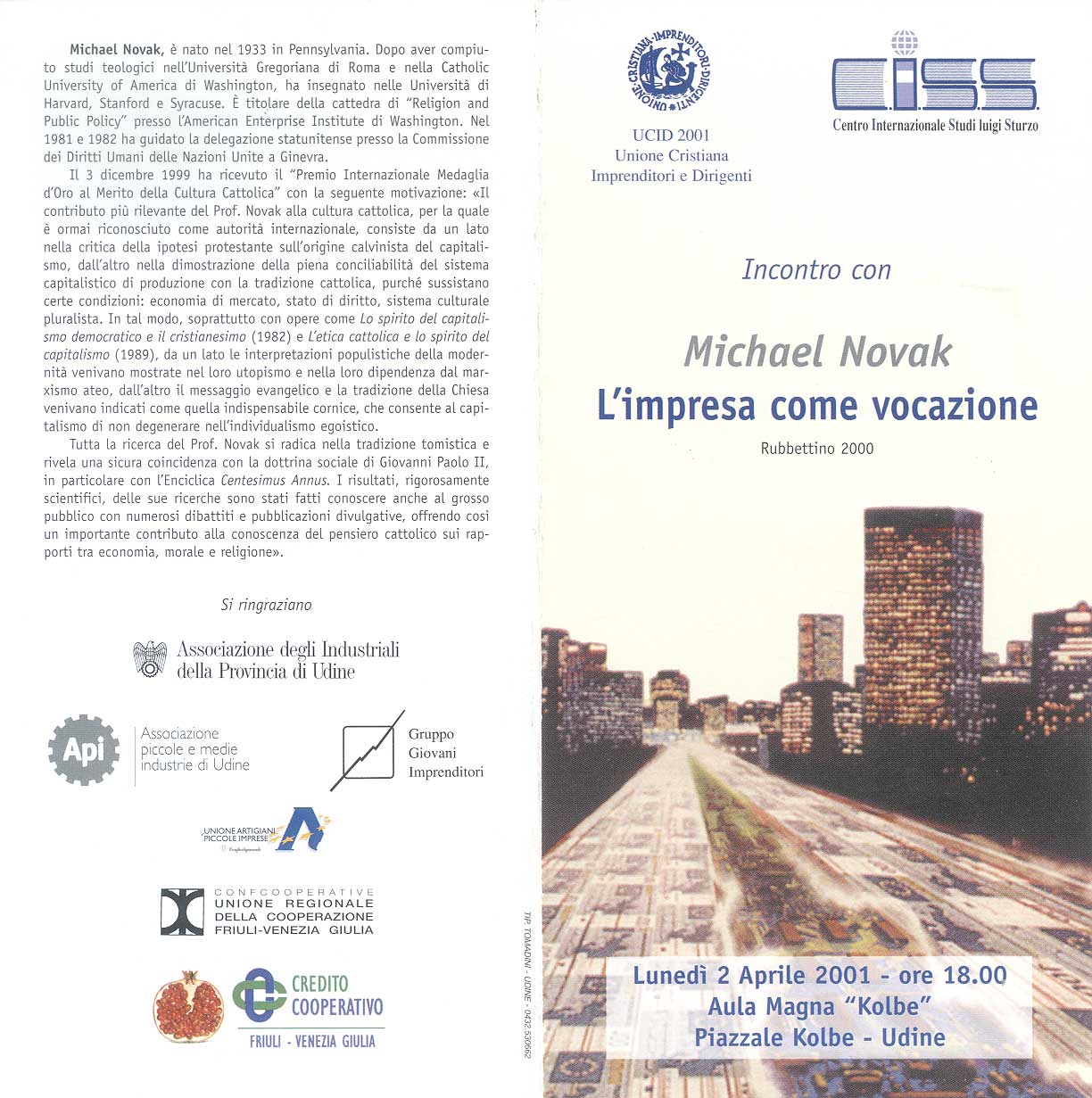 Aula magna "Kolbe" - piazzale Kolbe - Udine - 2 aprile 2001 dalle ore 18.00